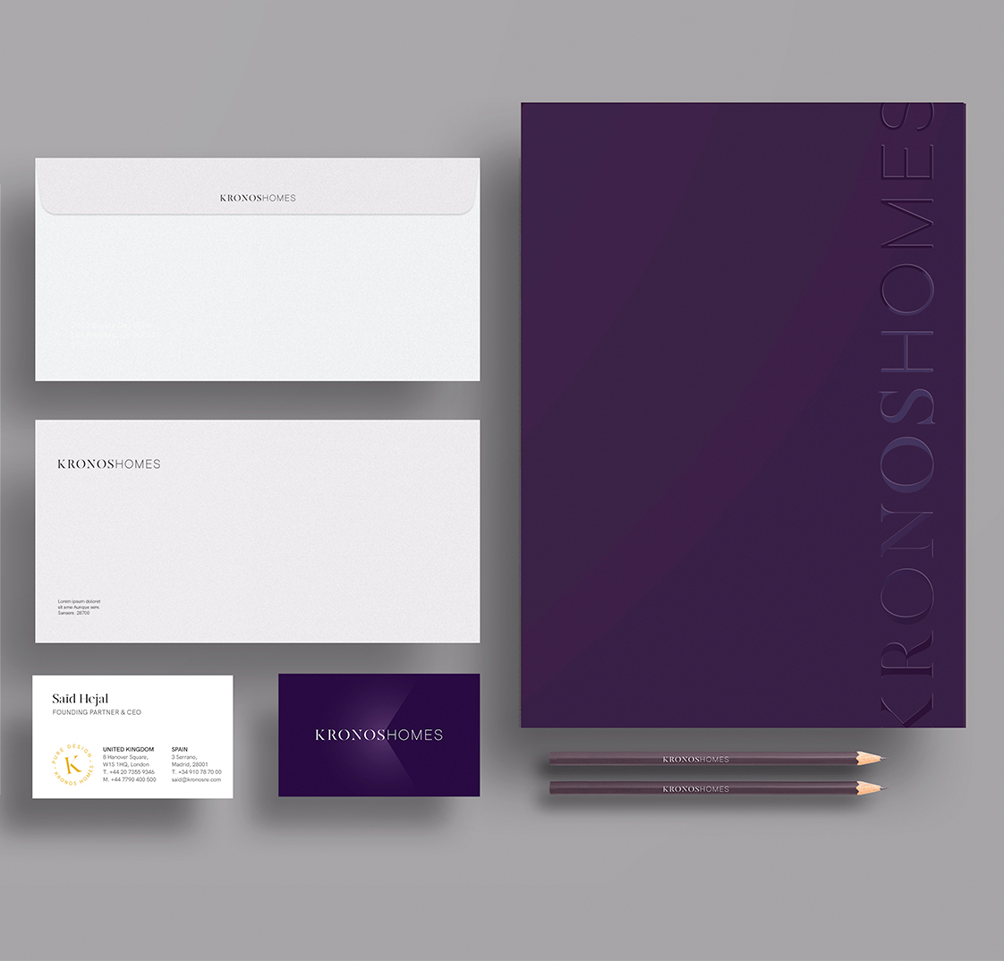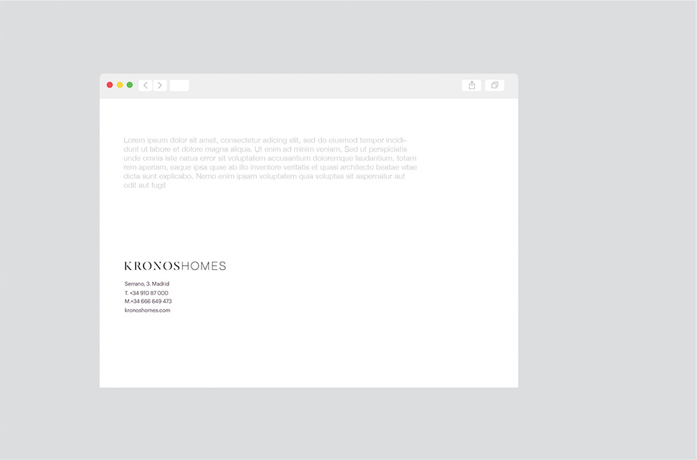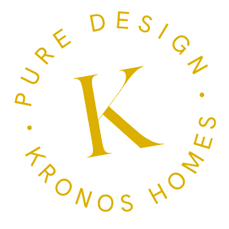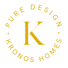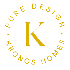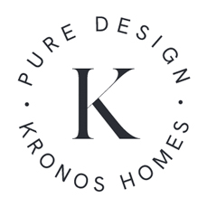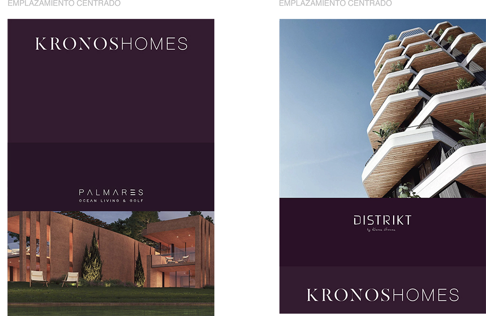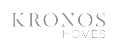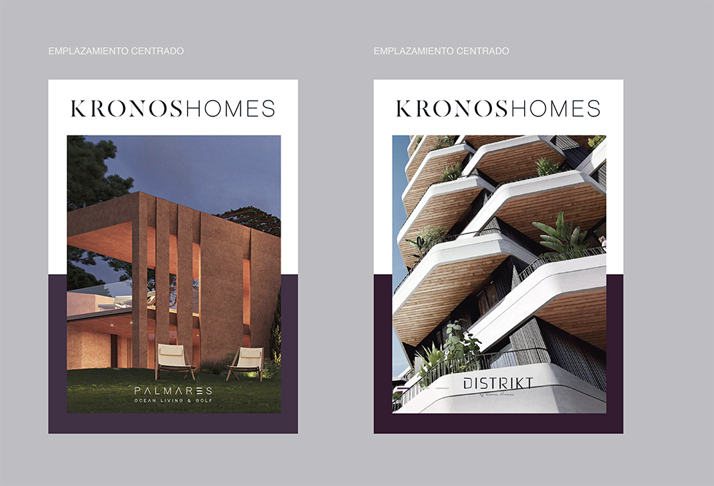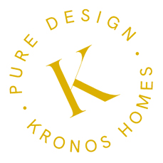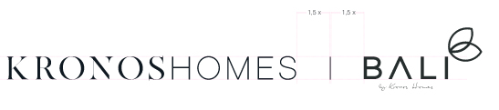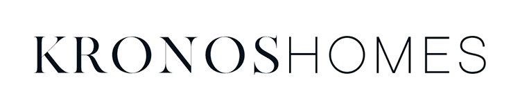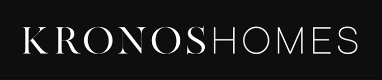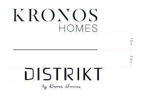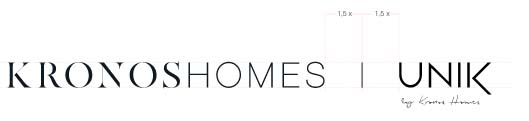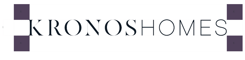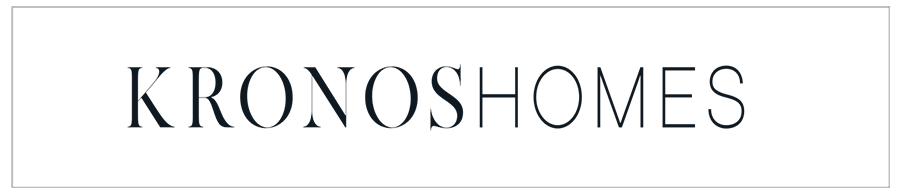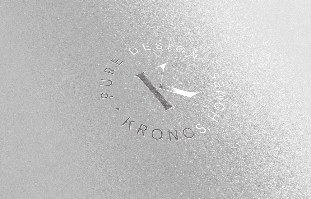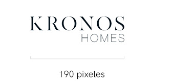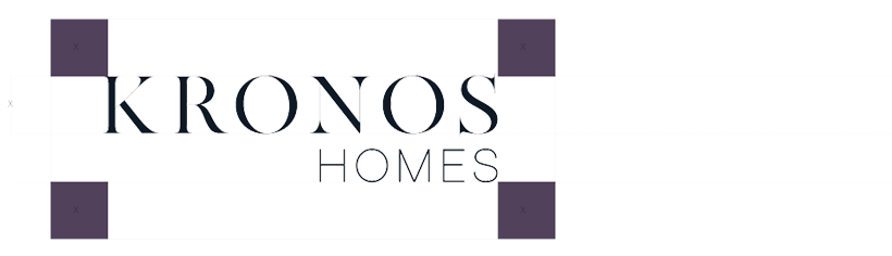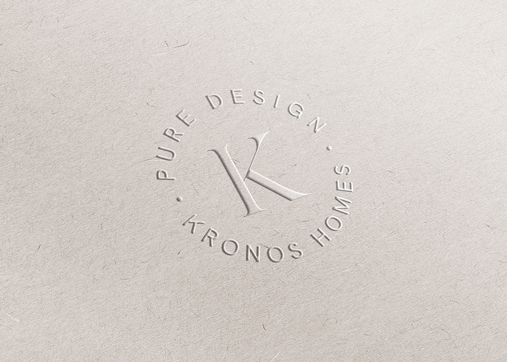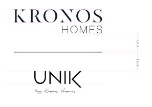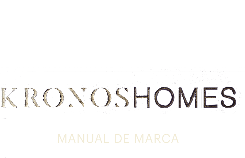 El logotipo de Kronos Homes se construye a partir de la tipografía Made Canvas Regular en caja alta y la tipografía Chalet Paris Nineteen Eighty que es light, en caja alta también. «Kronos» tiene un peso mayor que «Homes». La mezcla de una tipografía con serifa y otra sin serifa y muy light, dota de personalidad a la marca.