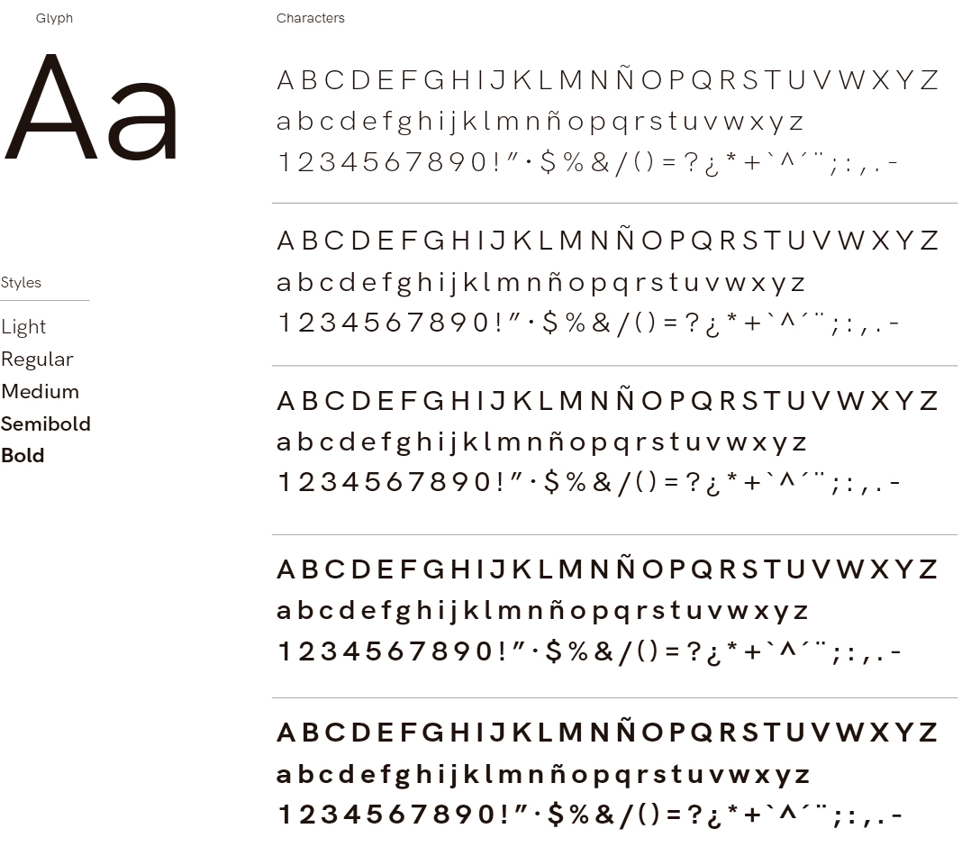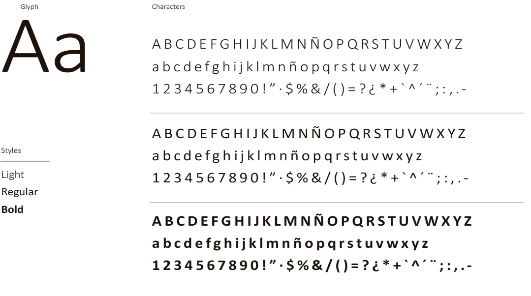 Esta tipografía la usaremos en titulares, nunca en bodycopies. Sobretodo usaremos la light y regular.