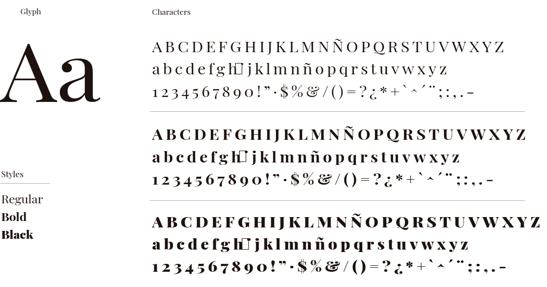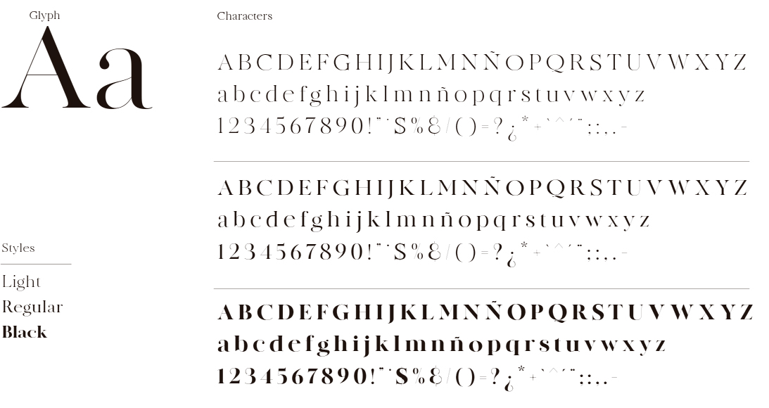 Made Canvas es una familia de fuentes serif de alto contraste. Es un estilo moderno “Didoni”. La familia de tipos incluye 3 pesos: Light, Regular y Black. Las líneas finas de todas las fuentes son extremadamente delgadas.
